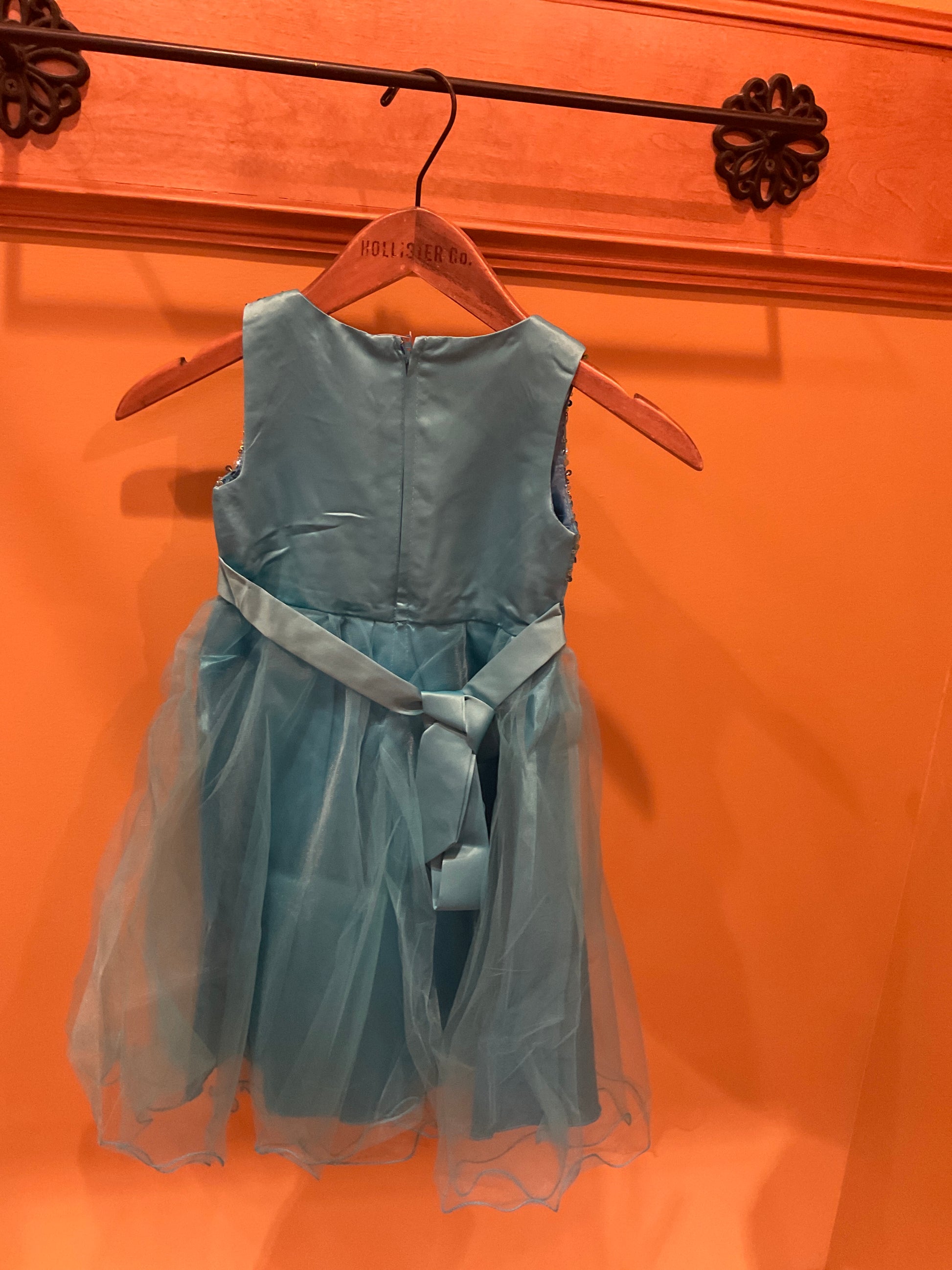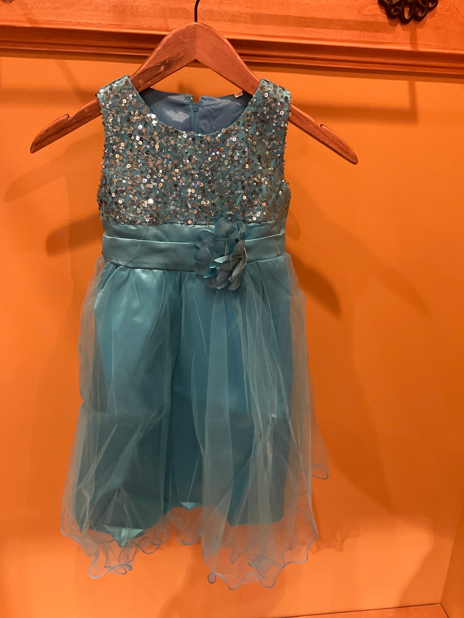 This child dress from Styles I Love features a sparkling top, a delicate flower accent at the waist, and a sheer over skirt with a ruffle bottom. Perfect for special occasions, it will add a touch of elegance and whimsy to any little one's wardrobe.